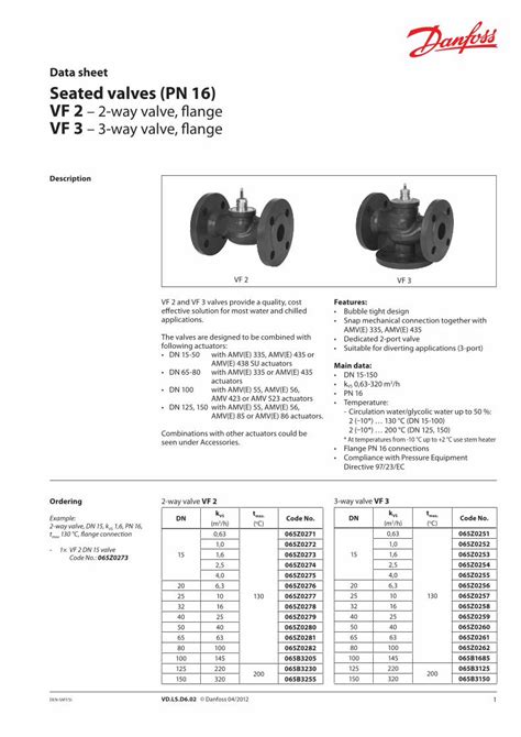 data sheet seated valves pn 6 danfoss